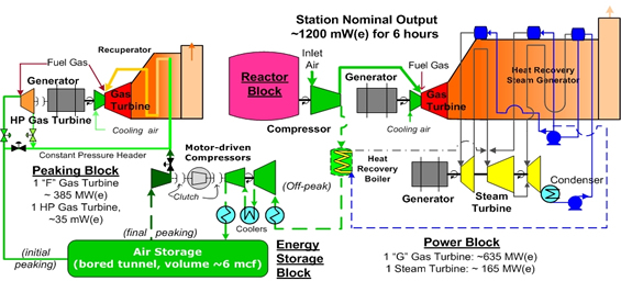 The Hybrid-nuclear/Compressed Air Energy Storage (CAES) power plant overcomes the issues that have long hindered the storage of energy. This innovative approach can significantly improve the economics of renewable energy. (figure 4)