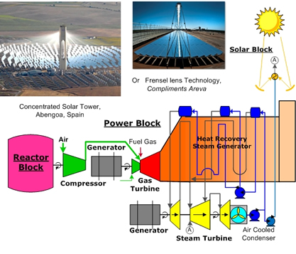 The Hybrid-nuclear/Integrated Solar Combined-cycle (ISCC) power station can provide peaking power with exceptionally low emissions at costs well below those of conventional gas turbines and solar power plants.